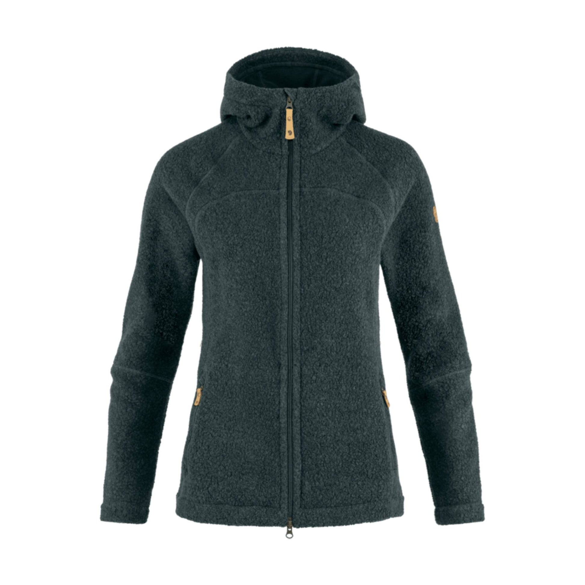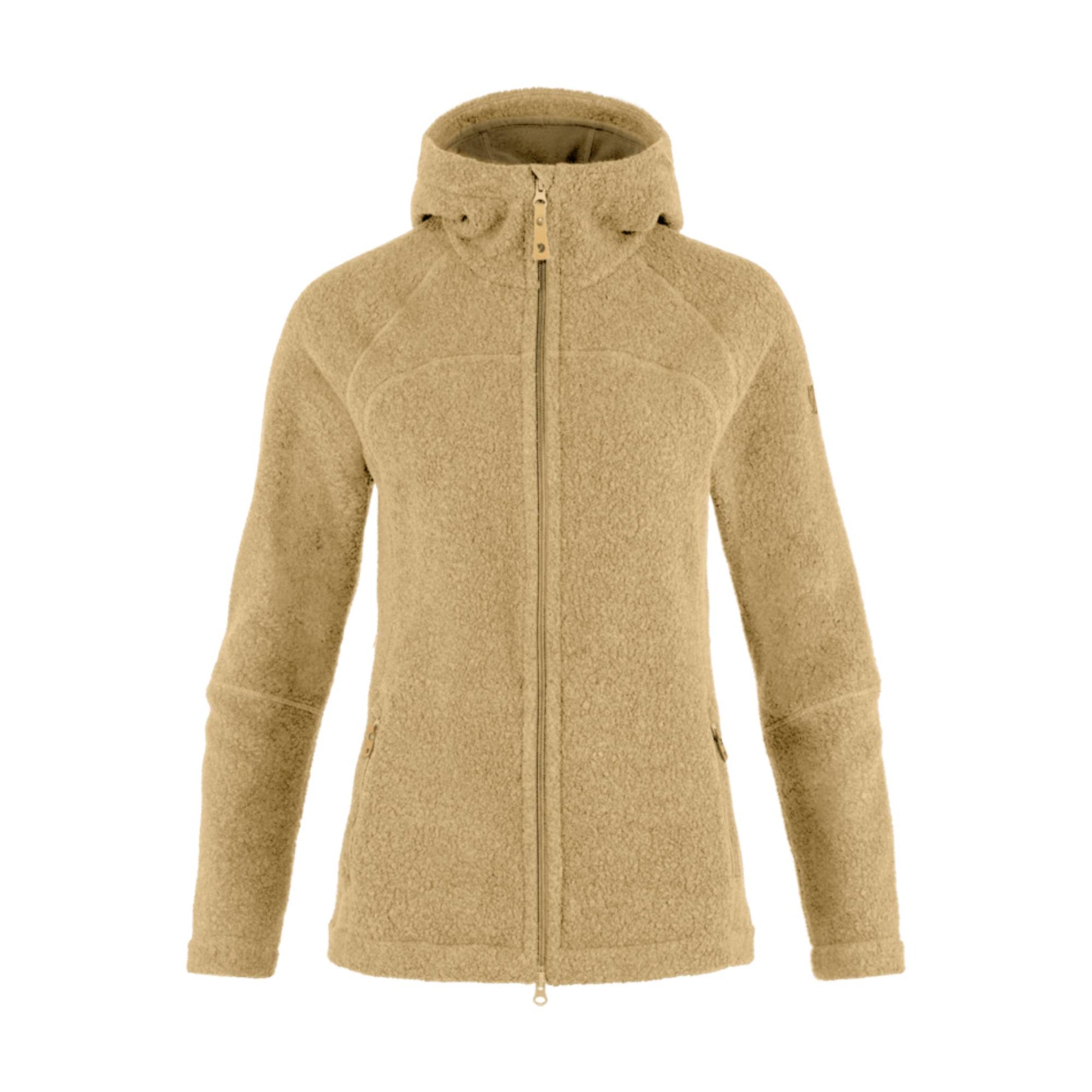 Comfortable fleece with Fjallraven's new, updated fit. Made from a ZQ merino wool blend that combines the temperature-regulating properties of wool with the durability of polyester. Can be worn both as a warm, moisture-wicking middle layer under a shell jacket and when relaxing after a trek. Snug hood with microfleece lining that is soft against the cheek. Full-length zipper in the front with protective flap at the chin. Two zippered side pockets. Attractive women's cut with comfort fit.
