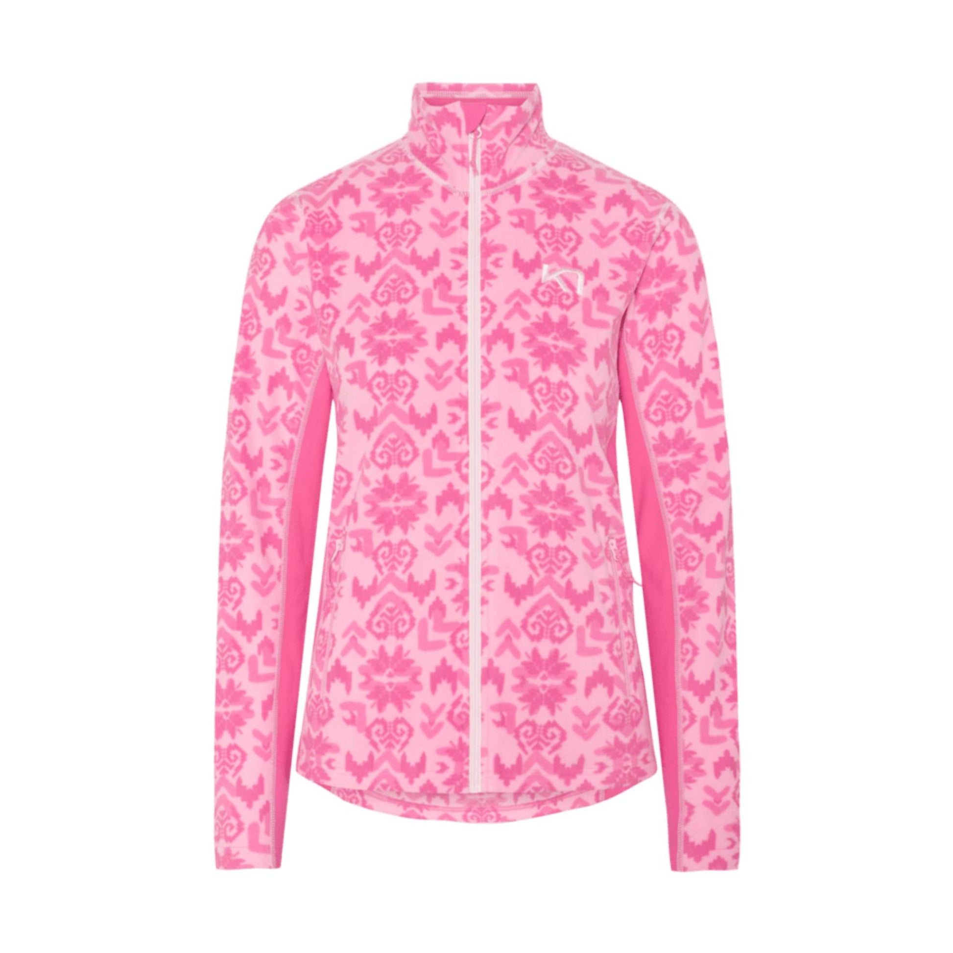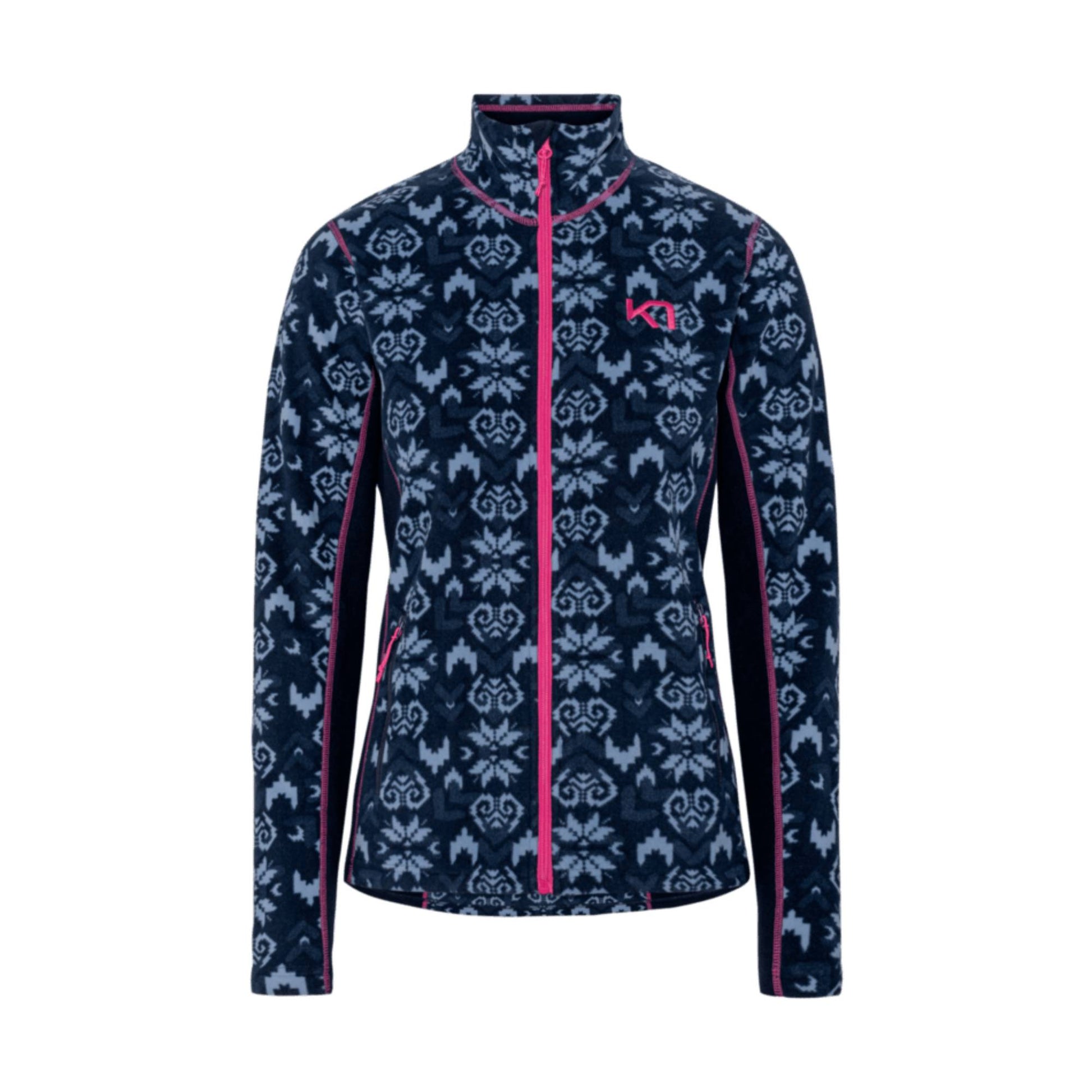 The Kari Traa Olga Fleece is a warm, relaxed-cut women’s winter midlayer jacket with a loud, all-over Inca-print design for taking on the outdoors in style. Its super-robust quality keeps it looking great for ages. Underarm panels stop it riding up if you throw your hands in the air, while flatlock seams cut out chafing. The high collar keeps out the cold. And if things get too hot, there’s a full-length zip for venting.