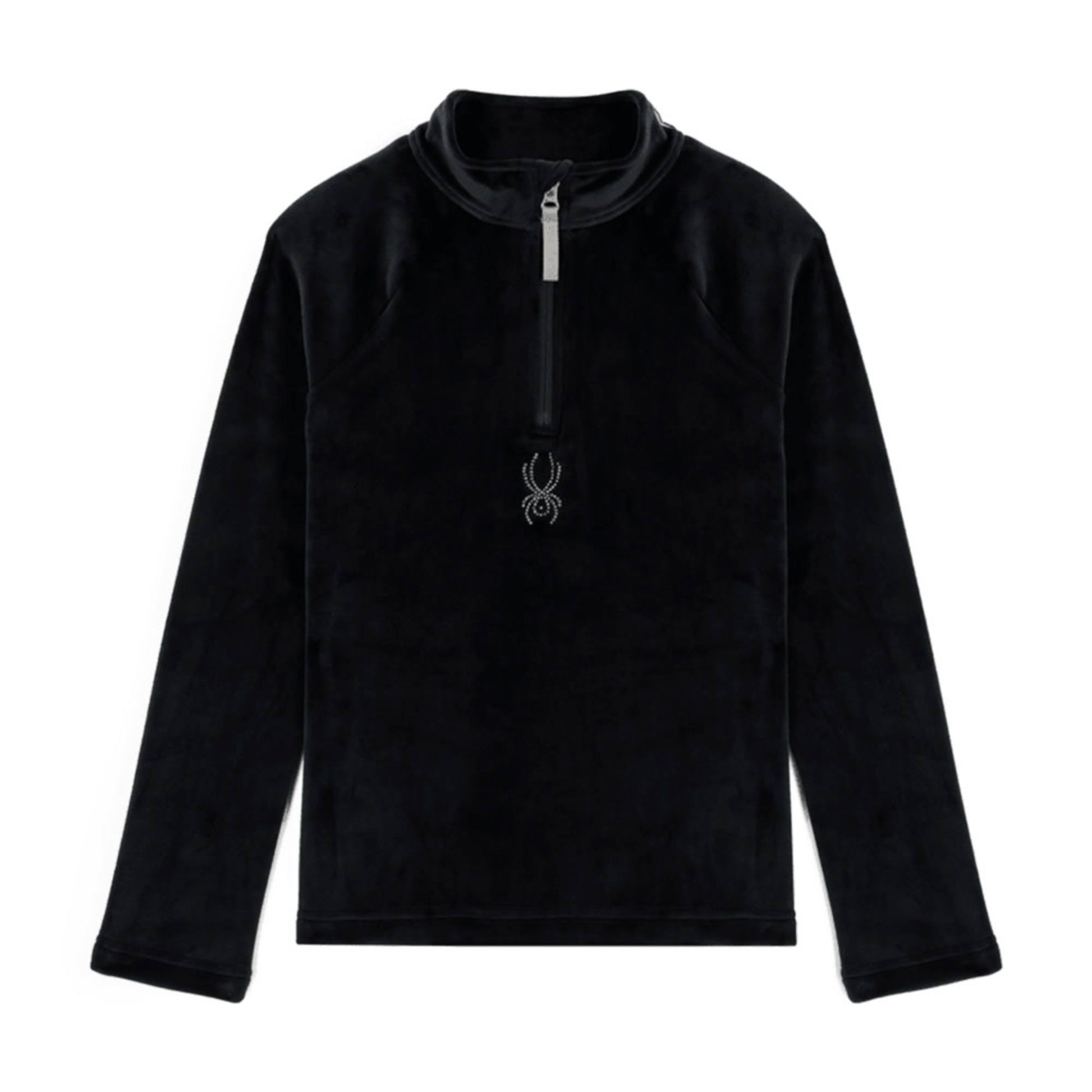 You can't go wrong with the Shimmer Bug 1/2 zip in cozy velour fleece. This classis pullover with a jeweled crystal logo comes in an array of uniform colors that match any Spyder kit.